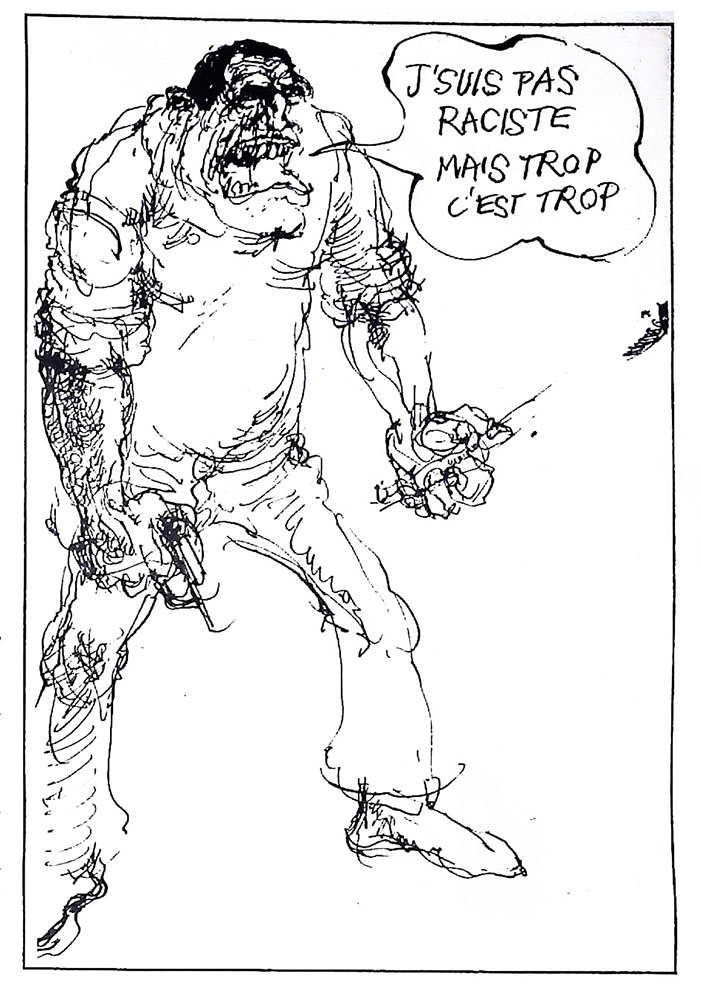 29 x 41 cm 12 pages → Offset ↪ FR Parution en mars 1975Libération n°388 chez : Libération Numerisation : Oui (150 dpi) Collection privée PLUS MOINS