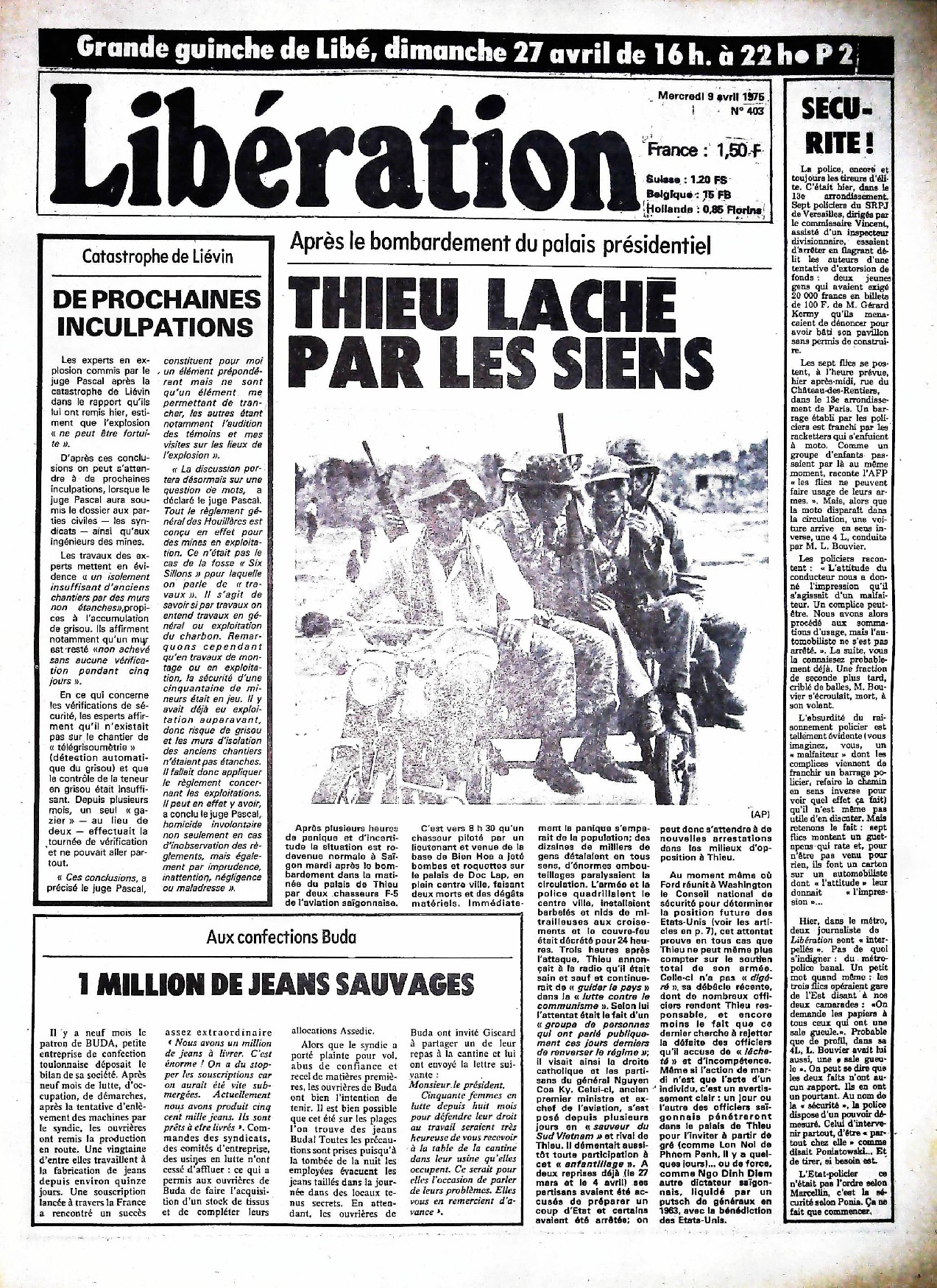29 x 41 cm 12 pages → Offset ↪ FR Parution en avril 1975Libération n°403 chez : Libération Numerisation : Oui (150 dpi) Collection privée PLUS MOINS