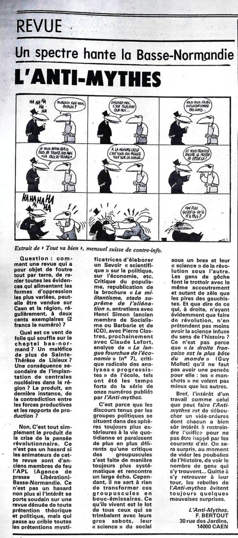 29 x 41 cm 12 pages → Offset ↪ FR Parution en mai 1975Libération n°426 chez : Libération Numerisation : Oui (150 dpi) Collection privée PLUS MOINS