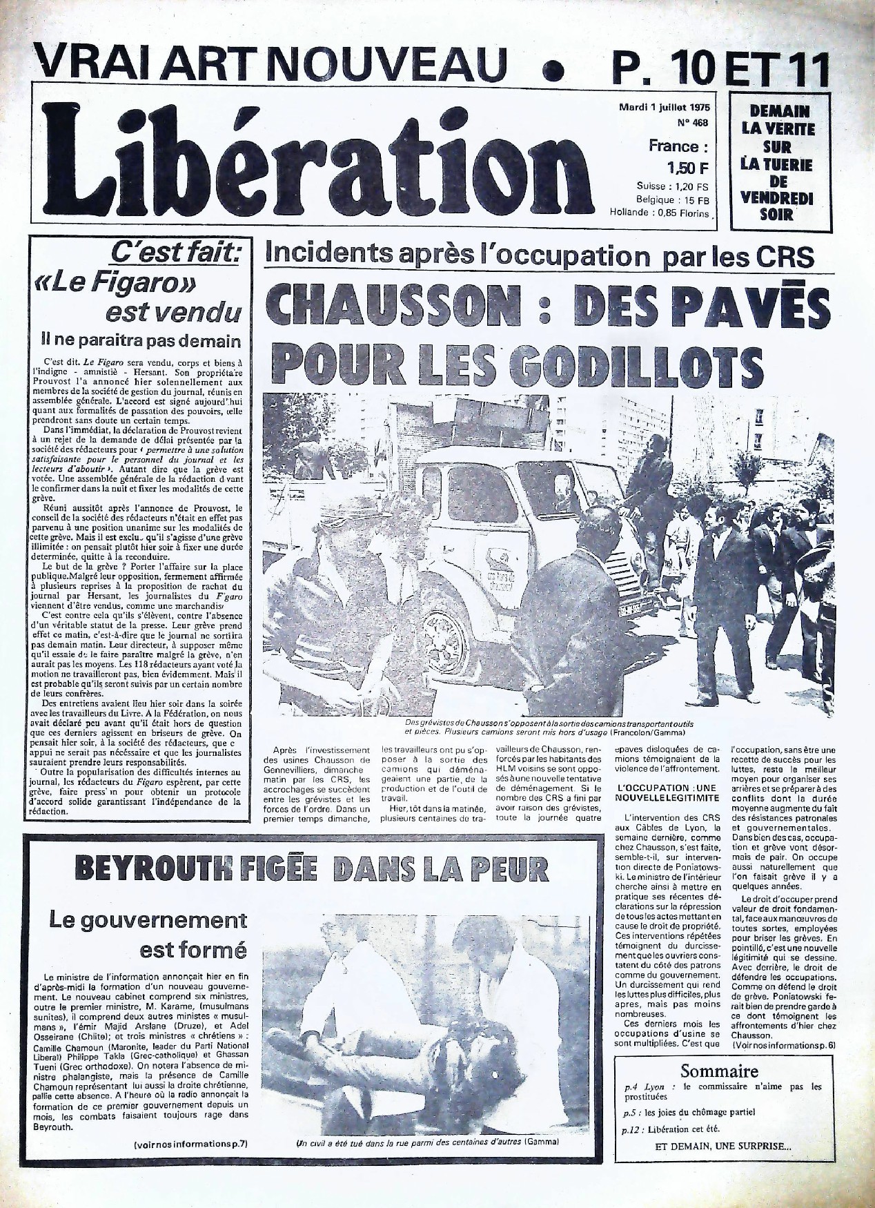 29 x 41 cm 12 pages → Offset ↪ FR Parution en juillet 1975Libération n°468 chez : Libération Numerisation : Oui (150 dpi) Collection privée PLUS MOINS