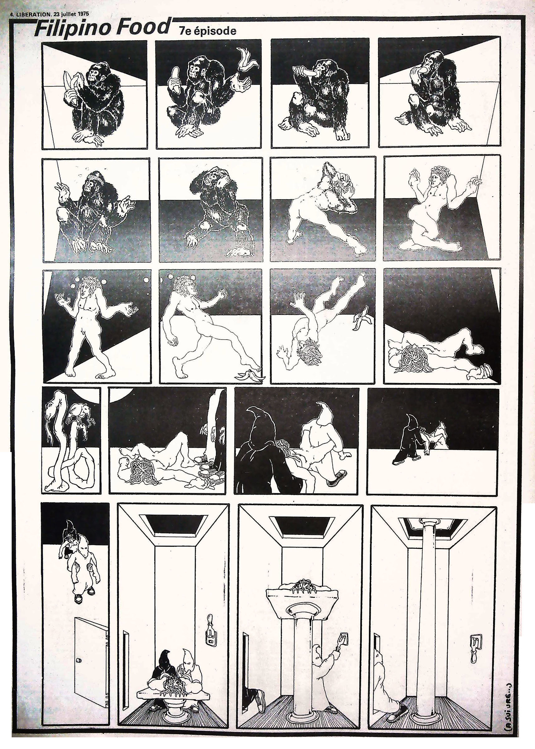 29 x 41 cm 12 pages → Offset ↪ FR Parution en juillet 1975Libération n°486 chez : Libération Numerisation : Oui (150 dpi) Collection privée PLUS MOINS