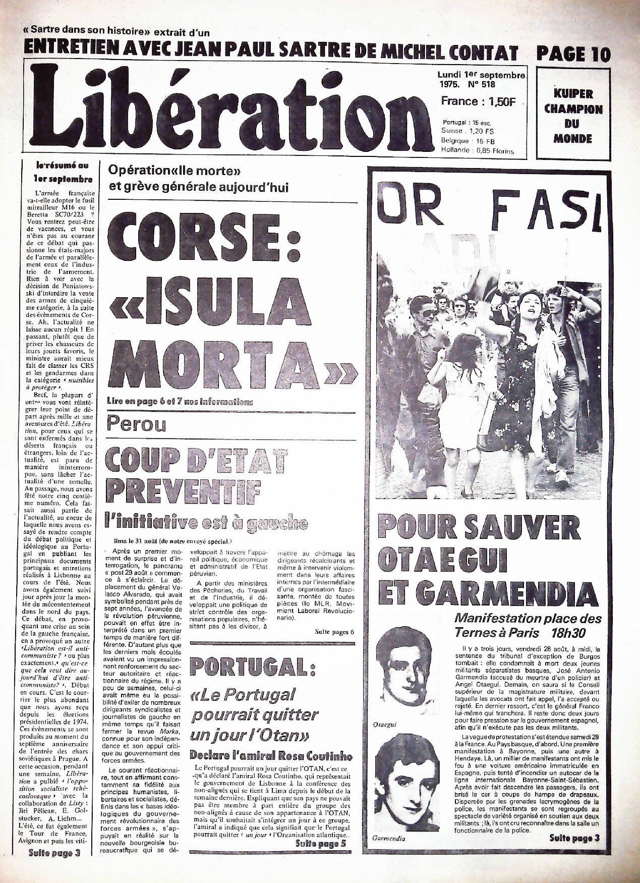 29 x 41 cm 12 pages → Offset ↪ FR Parution en septembre 1975Libération n°518 chez : Libération Numerisation : Oui (150 dpi) Collection privée PLUS MOINS