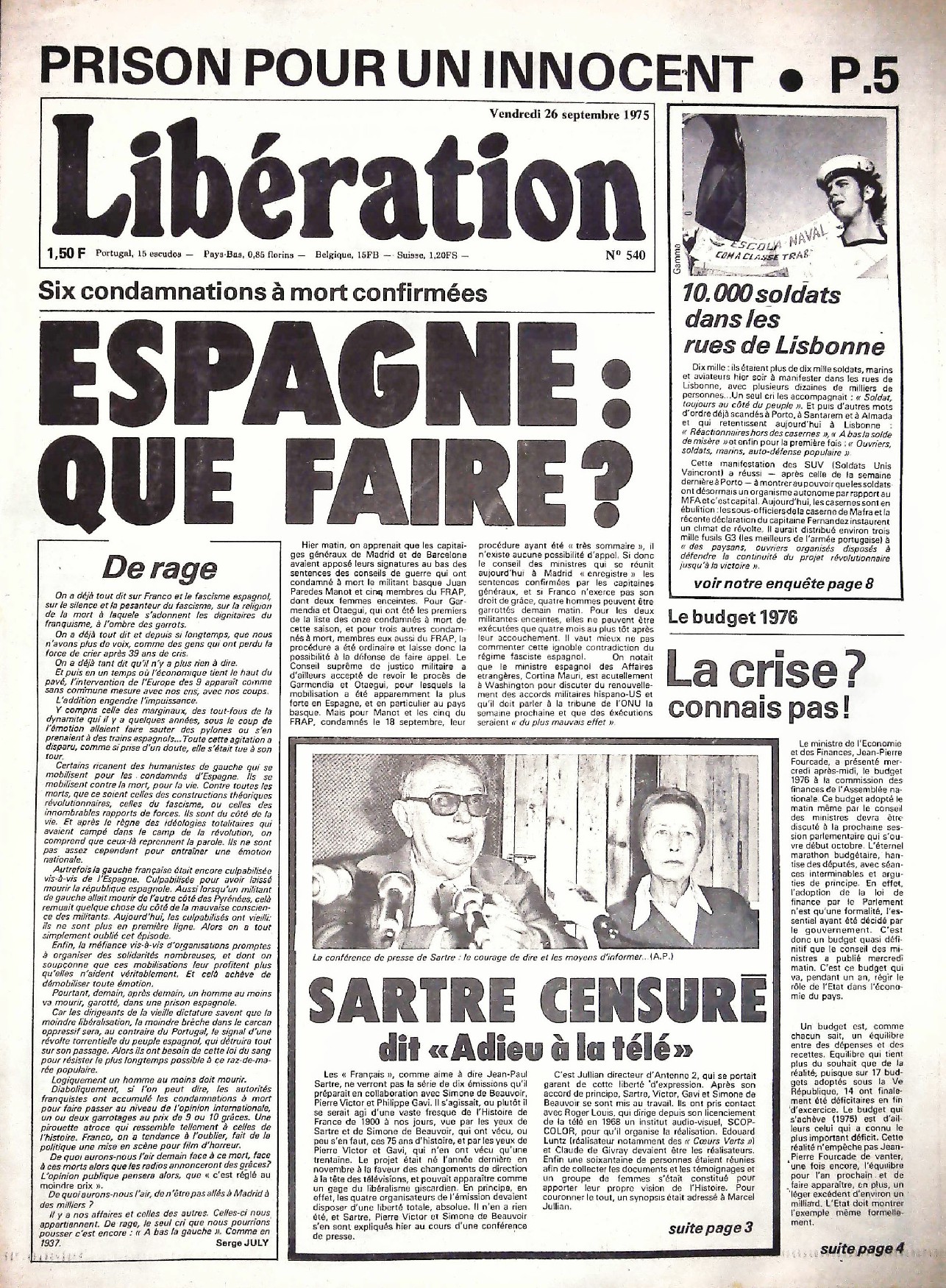 29 x 41 cm 12 pages → Offset ↪ FR Parution en septembre 1975Libération n°540 chez : Libération Numerisation : Oui (150 dpi) Collection privée PLUS MOINS