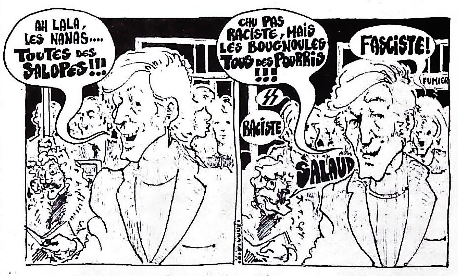 29 x 41 cm 12 pages → Offset ↪ FR Parution en octobre 1975Libération n°559 chez : Libération Numerisation : Oui (150 dpi) Collection privée PLUS MOINS