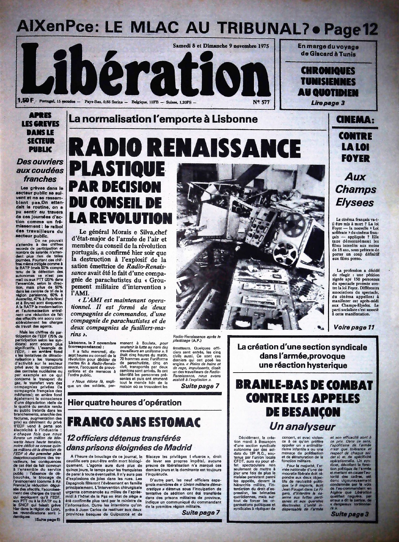 29 x 41 cm 12 pages → Offset ↪ FR Parution en novembre 1975Libération n°577 chez : Libération Numerisation : Oui (150 dpi) Collection privée PLUS MOINS
