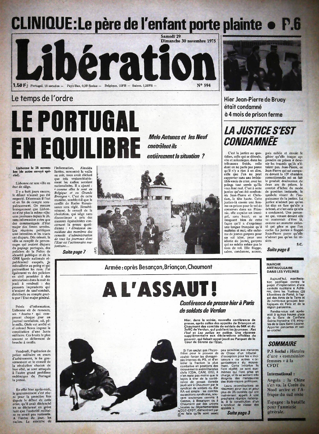 29 x 41 cm 12 pages → Offset ↪ FR Parution en novembre 1975Libération n°594 chez : Libération Numerisation : Oui (150 dpi) Collection privée PLUS MOINS