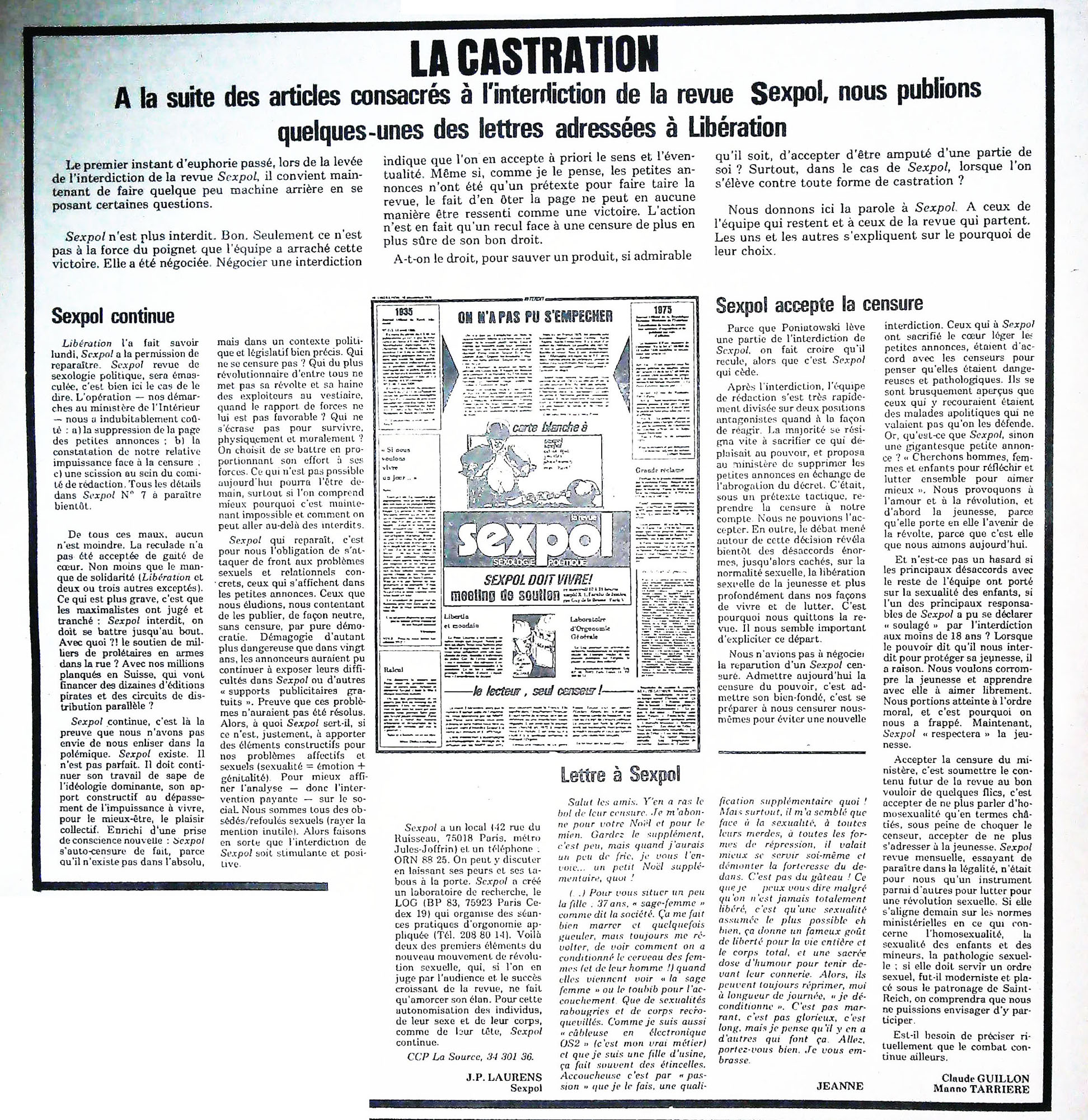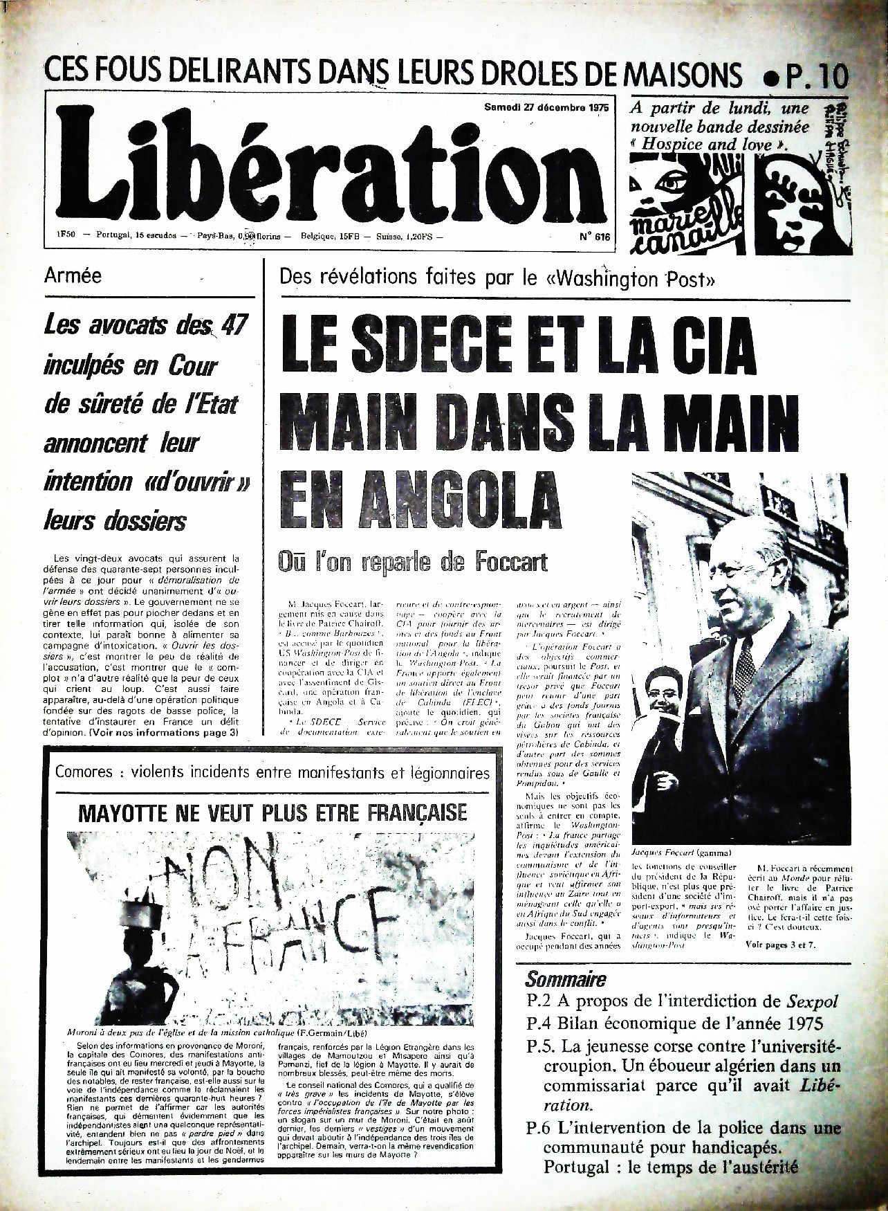 29 x 41 cm 12 pages → Offset ↪ FR Parution en decembre 1975Libération n°616 chez : Libération Numerisation : Oui (150 dpi) Collection privée PLUS MOINS