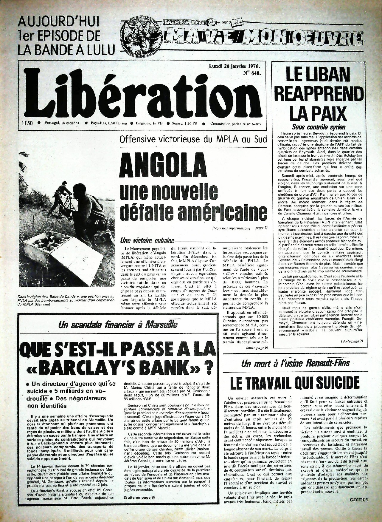 29 x 41 cm 12 pages → Offset ↪ FR Parution en janvier 1976Libération n°640 chez : Libération Numerisation : Oui (150 dpi) Collection privée PLUS MOINS