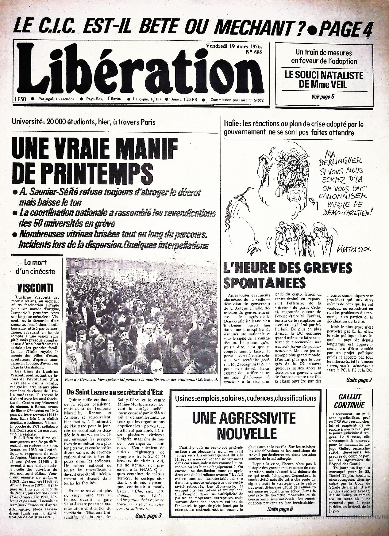 29 x 41 cm 12 pages → Offset ↪ FR Parution en mars 1976Libération n°685 chez : Libération Numerisation : Oui (150 dpi) Collection privée PLUS MOINS