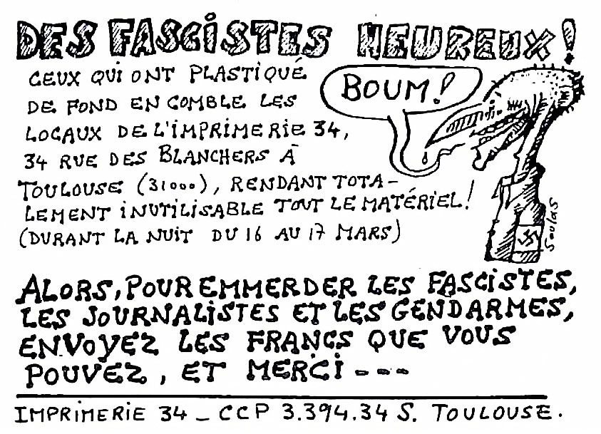 29 x 41 cm 12 pages → Offset ↪ FR Parution en mars 1976Libération n°693 chez : Libération Numerisation : Oui (150 dpi) Collection privée PLUS MOINS