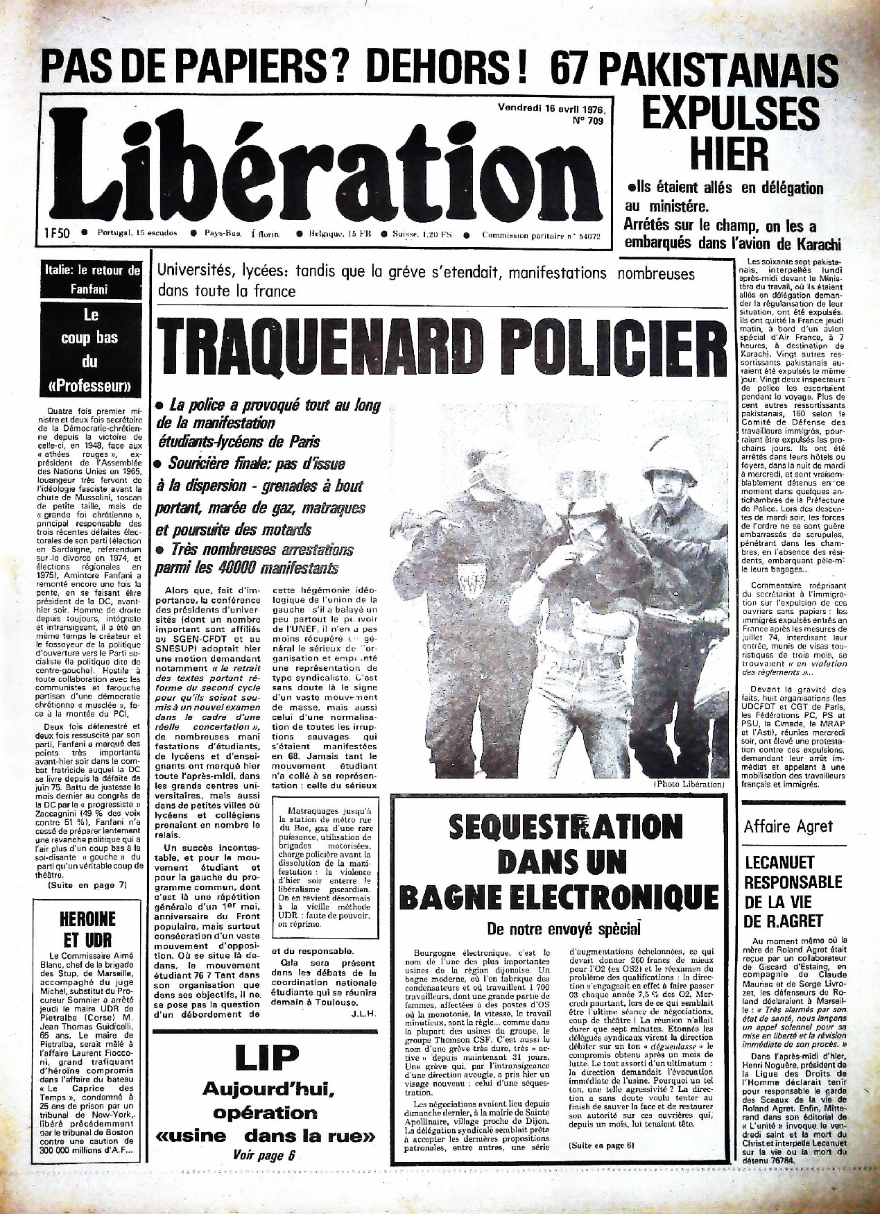 29 x 41 cm 12 pages → Offset ↪ FR Parution en avril 1976Libération n°709 chez : Libération Numerisation : Oui (150 dpi) Collection privée PLUS MOINS