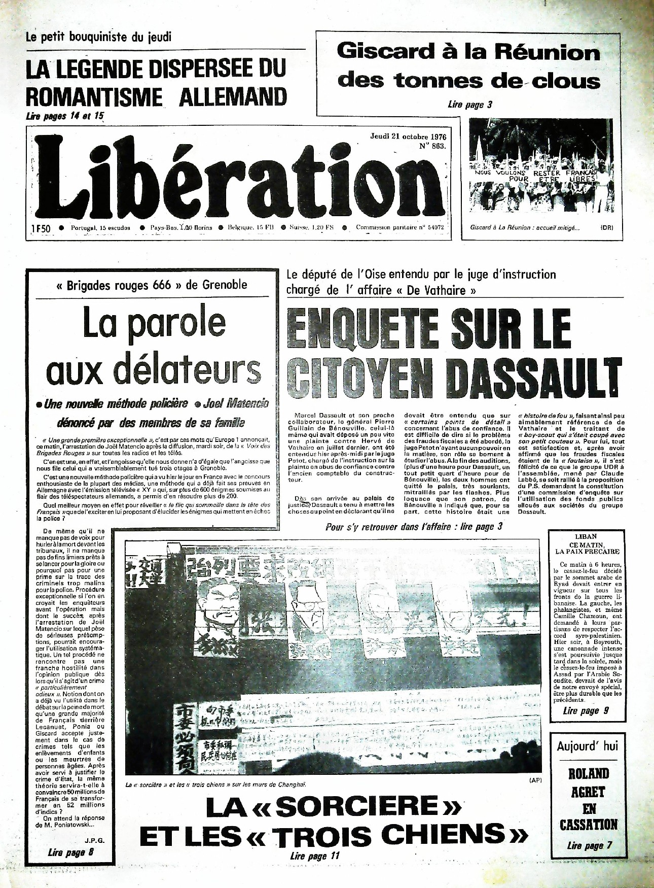 29 x 41 cm 16 pages → Offset ↪ FR Parution en octobre 1976Libération n°863 chez : Libération Numerisation : Oui (150 dpi) Collection privée PLUS MOINS