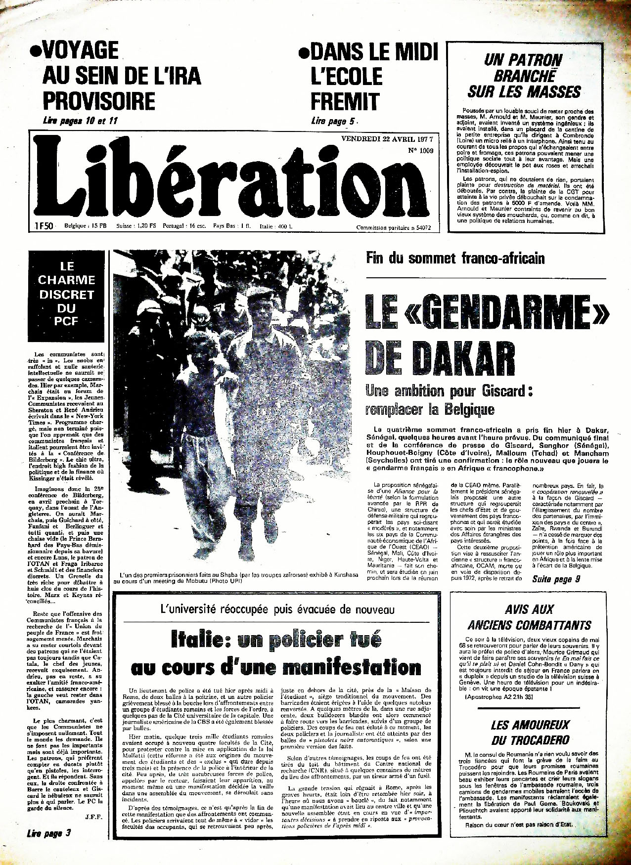 29 x 41 cm 16 pages → Offset ↪ FR Parution en avril 1977Libération n°1009 chez : Libération Numerisation : Oui (150 dpi) Collection privée PLUS MOINS
