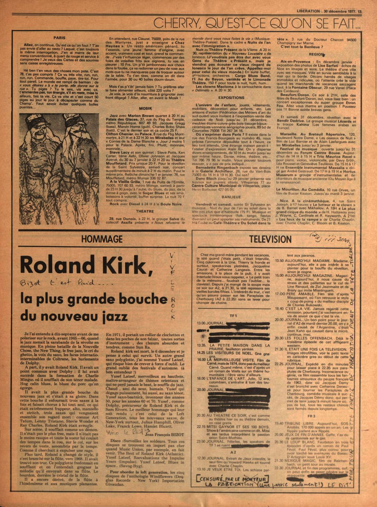 Libération n°1216 - Roland Kirk (Bizot)