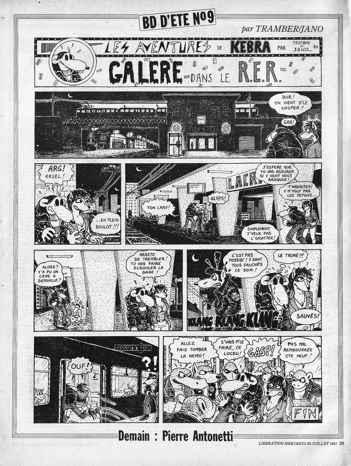 28 x 36 cm → Offset ↪ FR Parution en juillet 1981Libération (Bédé d'été 9 Tramber Jano) par : Jano chez : Libération Numerisation : Oui (300 dpi) Collection privée PLUS MOINS