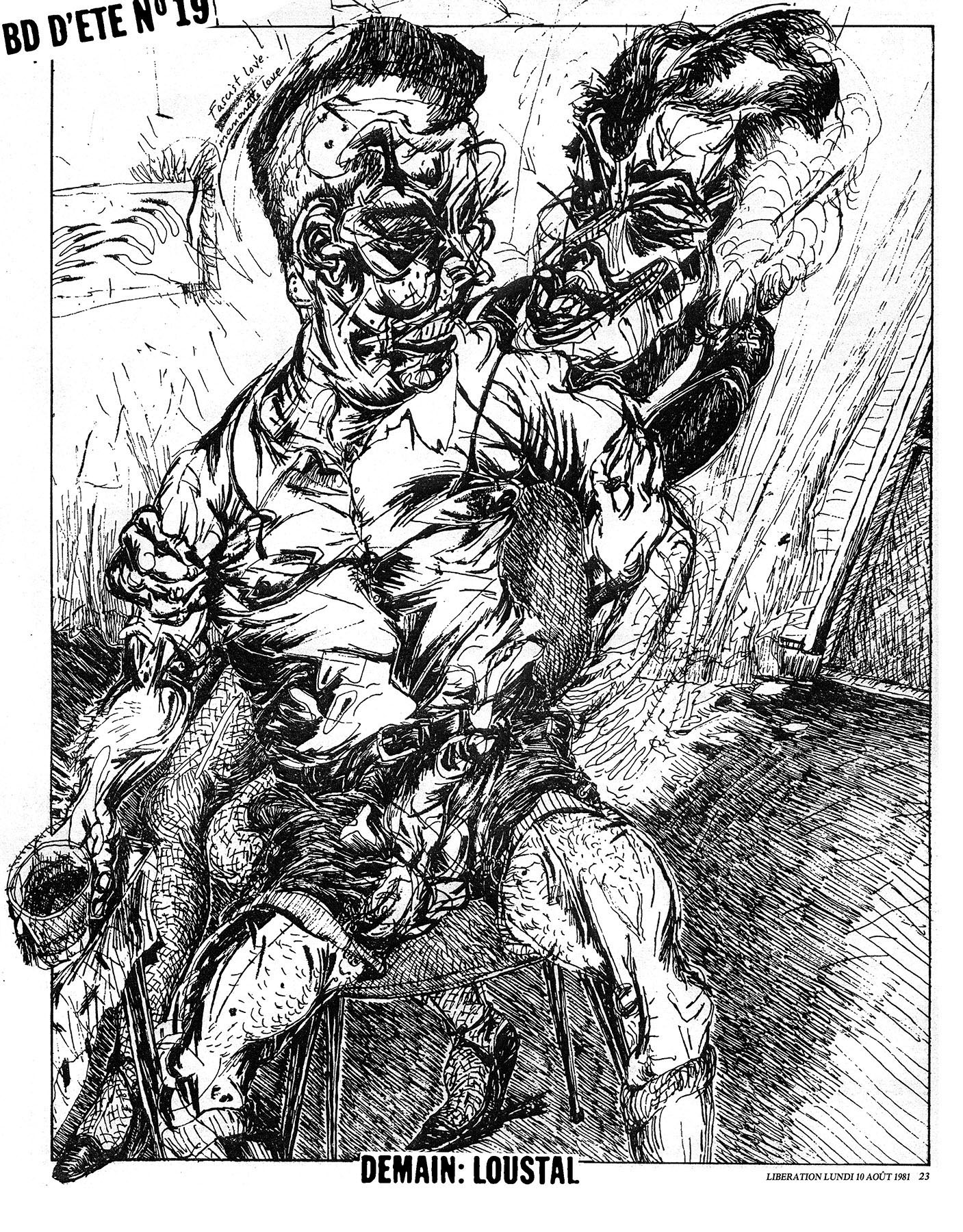 28 x 36 cm → Offset ↪ FR Parution en aout 1981Libération (Bédé d'été 19 Richard) par : Richard (Bruno) chez : Libération Numerisation : Oui (300 dpi) Collection privée PLUS MOINS