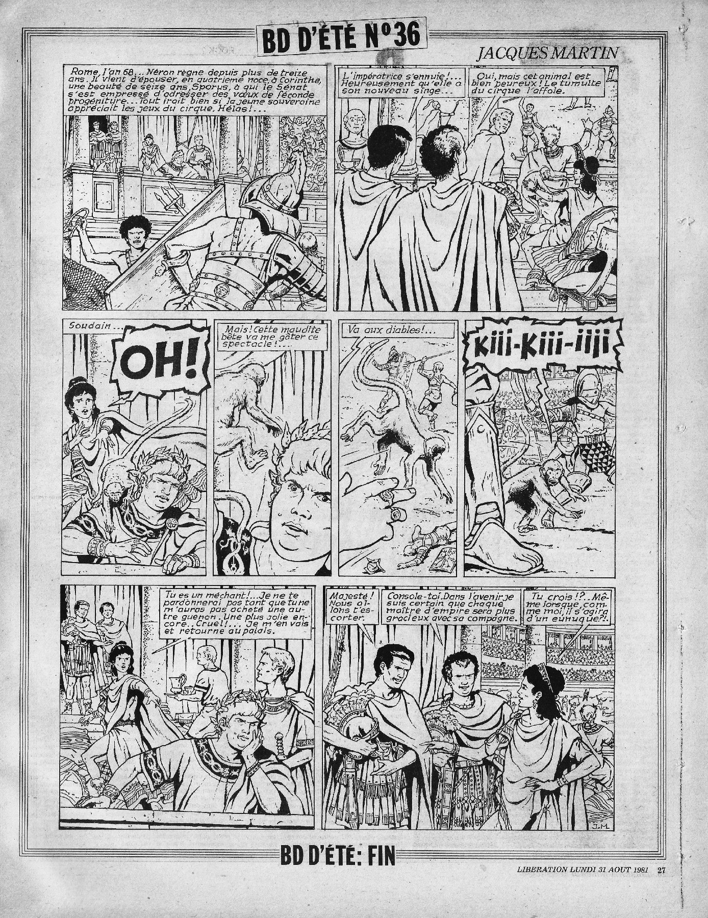 28 x 36 cm → Offset ↪ FR Parution en aout 1981Libération (Bédé d'été 36 Jacques Martin) chez : Libération Numerisation : Oui (300 dpi) Collection privée PLUS MOINS