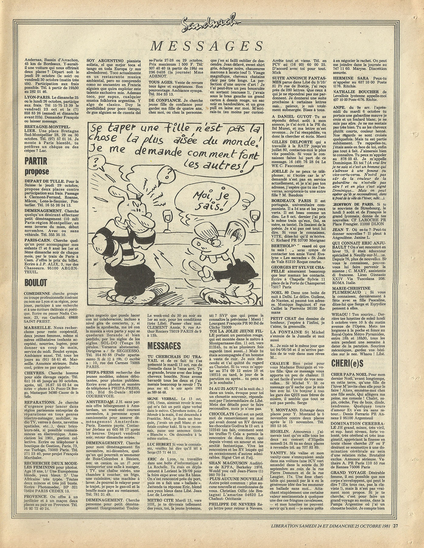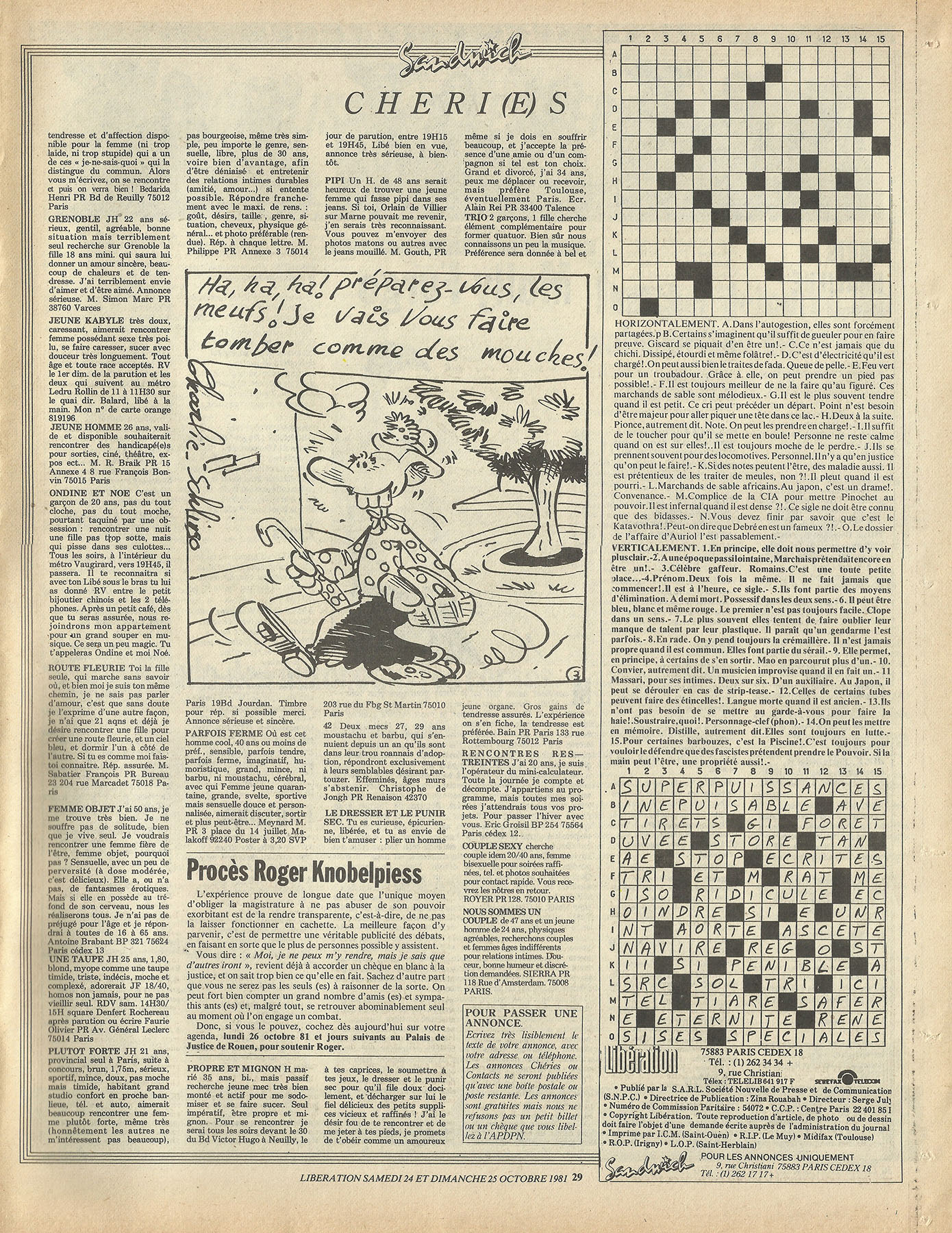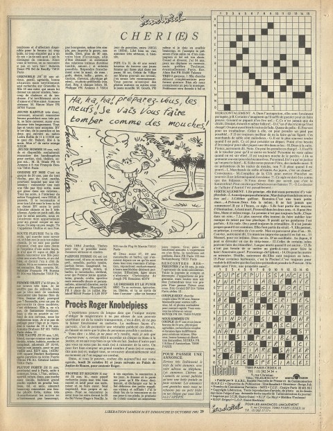 28 x 36 cm 3 pages → Offset ↪ FR Parution en octobre 1981Libération (Schlingo) par : Schlingo (Charlie) chez : Libération Numerisation : Oui (300 dpi) Collection privée PLUS MOINS
