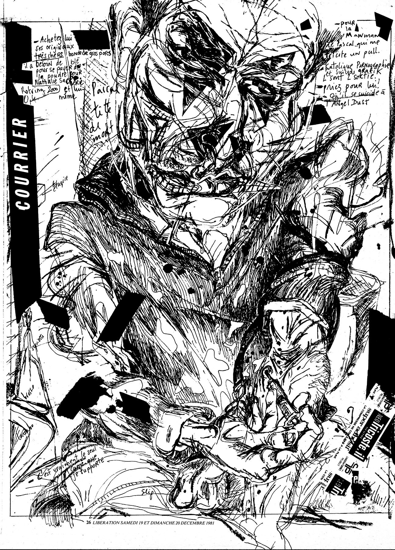 28 x 36 cm 1 pages → Offset ↪ FR Parution en decembre 1981Libération (Bruno Richard) par : Richard (Bruno) chez : Libération Numerisation : Oui (300 dpi) Collection privée PLUS MOINS