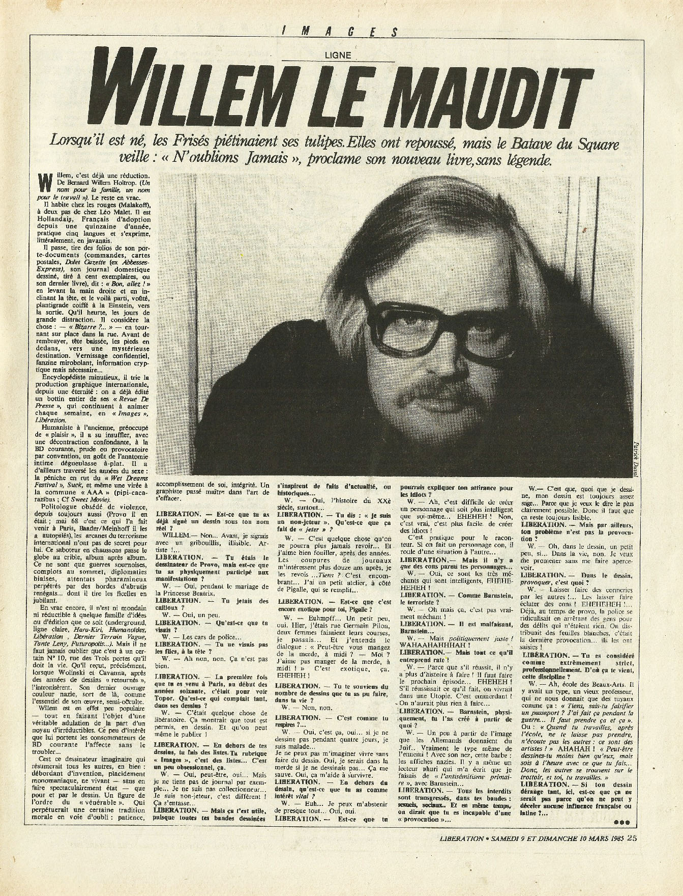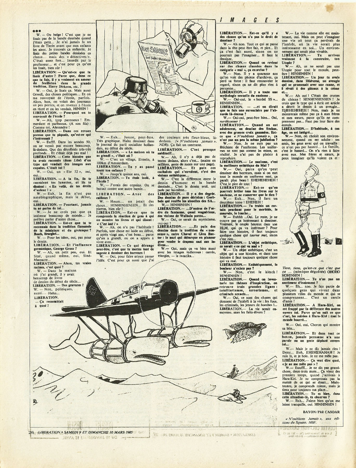 28 x 36 cm 2 pages → Offset ↪ FR Parution en mars 1985Libération (Willem) par : Willem chez : Libération Numerisation : Oui (300 dpi) Collection privée PLUS MOINS