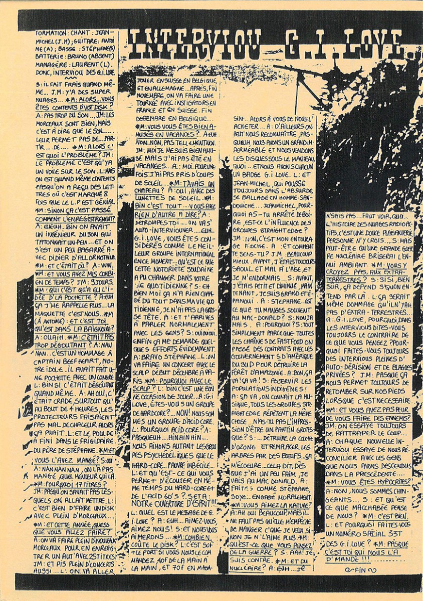 A5 4 pages → Photocopie NB ↪ FR ↪ Paris Parution en septembre 1989Macchabée Hors série 1 Auto édition Numerisation : Oui En ligne sur Fanzinothèque.fr PLUS MOINS