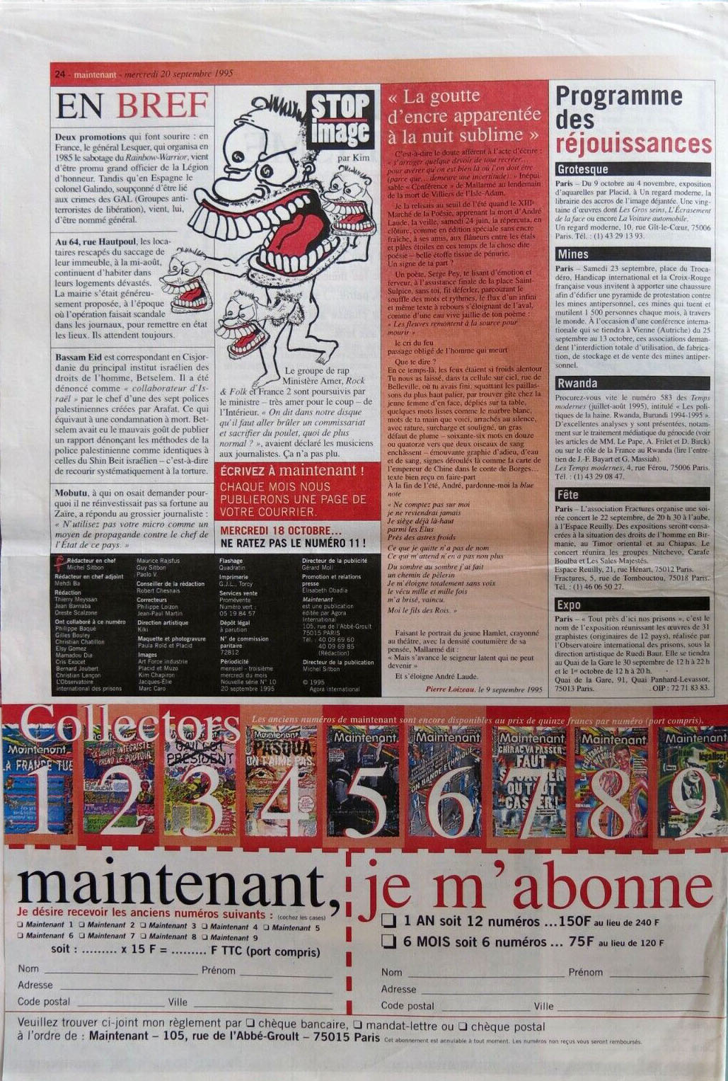 Mégazine 30.5 x 45 cm → Offset ↪ FR ↪ Paris Parution en septembre 1995Maintenant n°10 Numerisation : Non En recherche PLUS MOINS