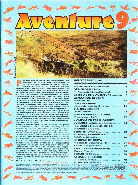 A4 21 x 27 cm 84 pages → Offset ↪ FR Parution en janvier 1985Métal Aventure n°9 chez : Humanoïdes Associés Numerisation : Oui (150 dpi) Collection privée PLUS MOINS