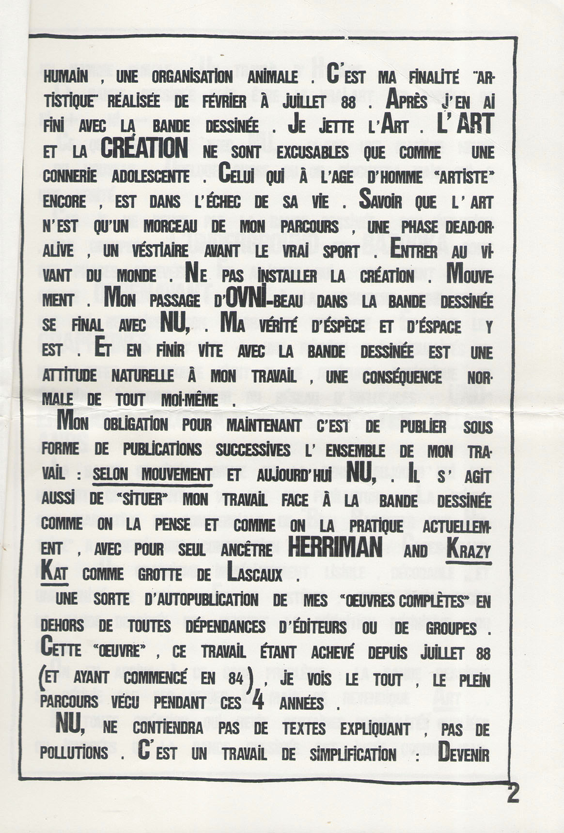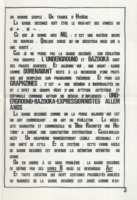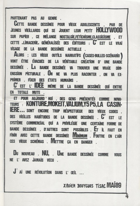 A4 4 pages → Photocopie NB ↪ FR Parution en mai 1989Nu, par : Bouygues (Xavier) Auto édition Numerisation : Oui (300 dpi) Collection privée PLUS MOINS