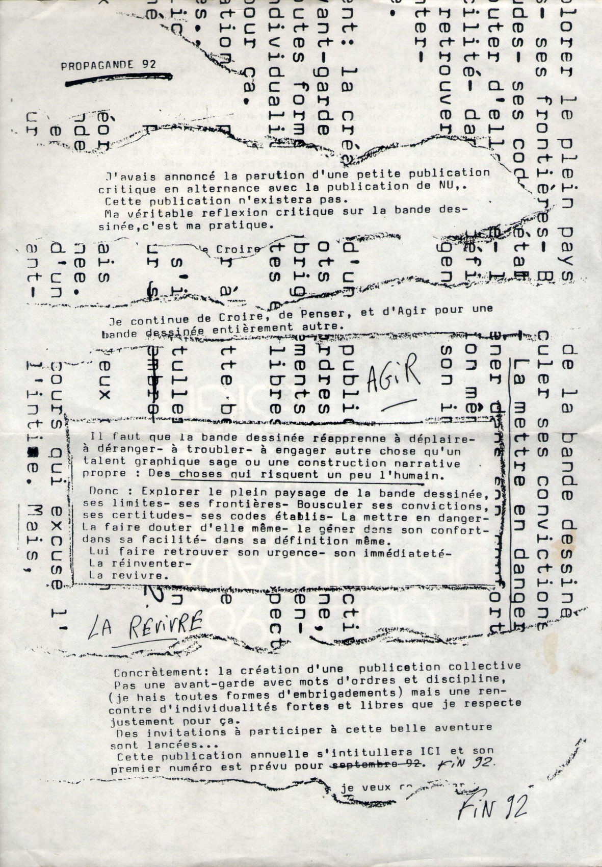 A4 2 pages → Photocopie NB ↪ FR ↪ 77 ↪ Roissy en Brie Parution en avril 1992Perspectives par : Bouygues (Xavier) Numerisation : Oui (300 dpi) Collection privée PLUS MOINS