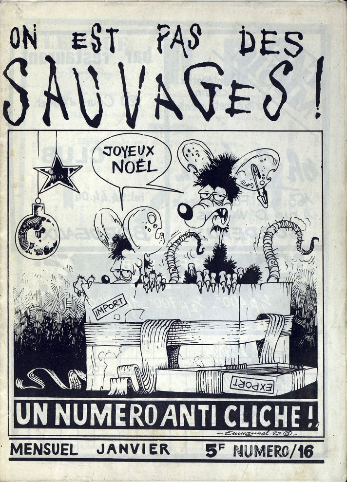 A4 36 pages → Photocopie NB ↪ FR ↪ 64 ↪ Pau Parution en decembre 1982On Est Pas Des Sauvages n°16 Numerisation : Oui En ligne sur Fanzinothèque.fr PLUS MOINS