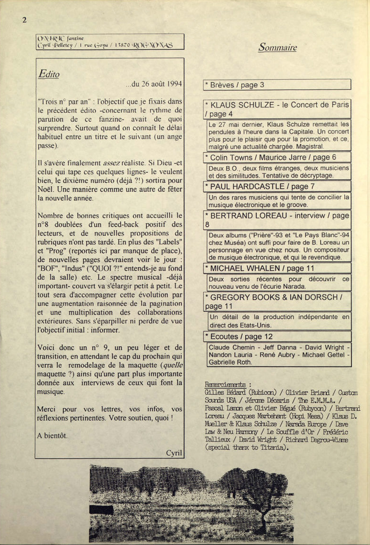 A4 12 pages → Photocopie NB ↪ FR ↪ 13 ↪ Rognonas Parution en septembre 1994Oniric n°9 Numerisation : Oui (150 dpi) En ligne sur Fanzinothèque.fr PLUS MOINS
