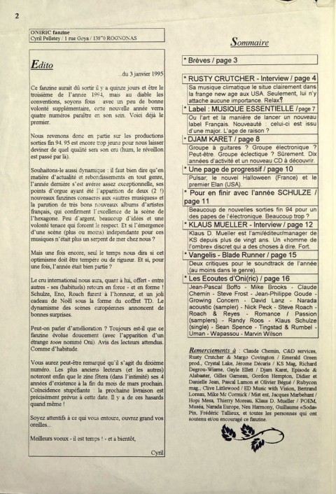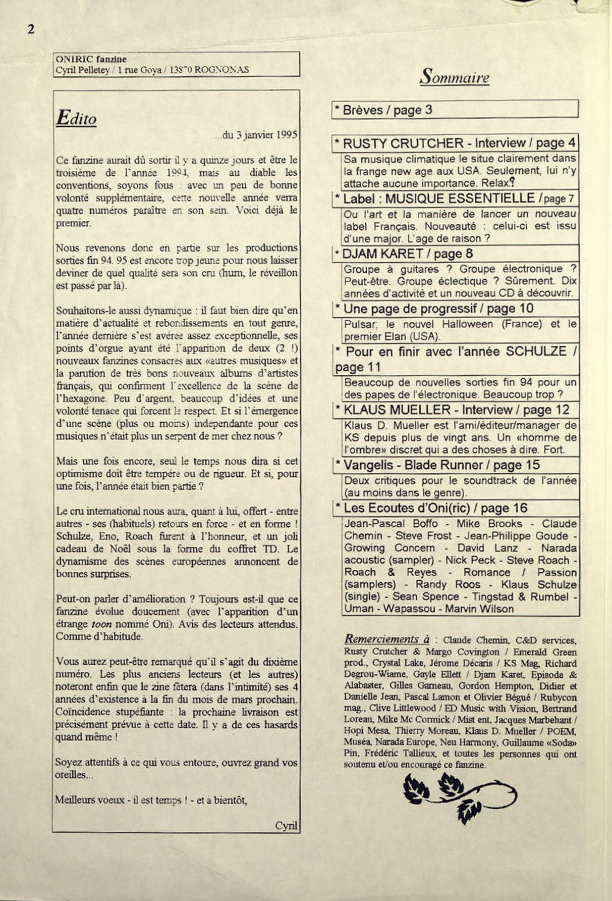 A4 18 pages → Photocopie NB ↪ FR ↪ 13 ↪ Rognonas Parution en janvier 1995Oniric n°10 Numerisation : Oui (150 dpi) En ligne sur Fanzinothèque.fr PLUS MOINS