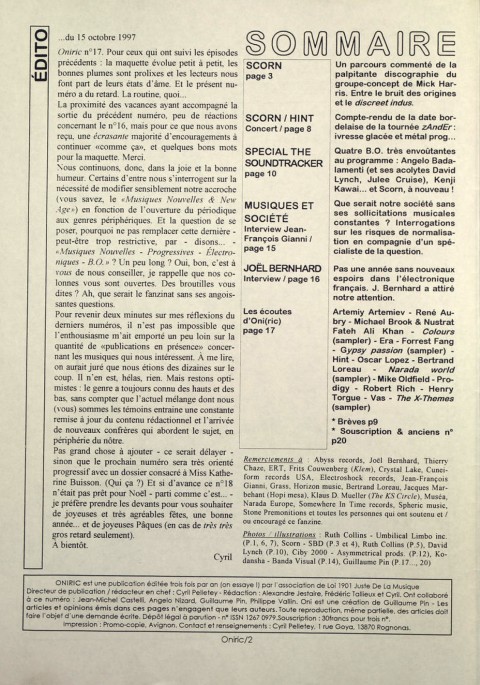 A4 20 pages → Photocopie NB ↪ FR ↪ 13 ↪ Rognonas Parution en octobre 1997Oniric n°17 Numerisation : Oui (150 dpi) En ligne sur Fanzinothèque.fr PLUS MOINS