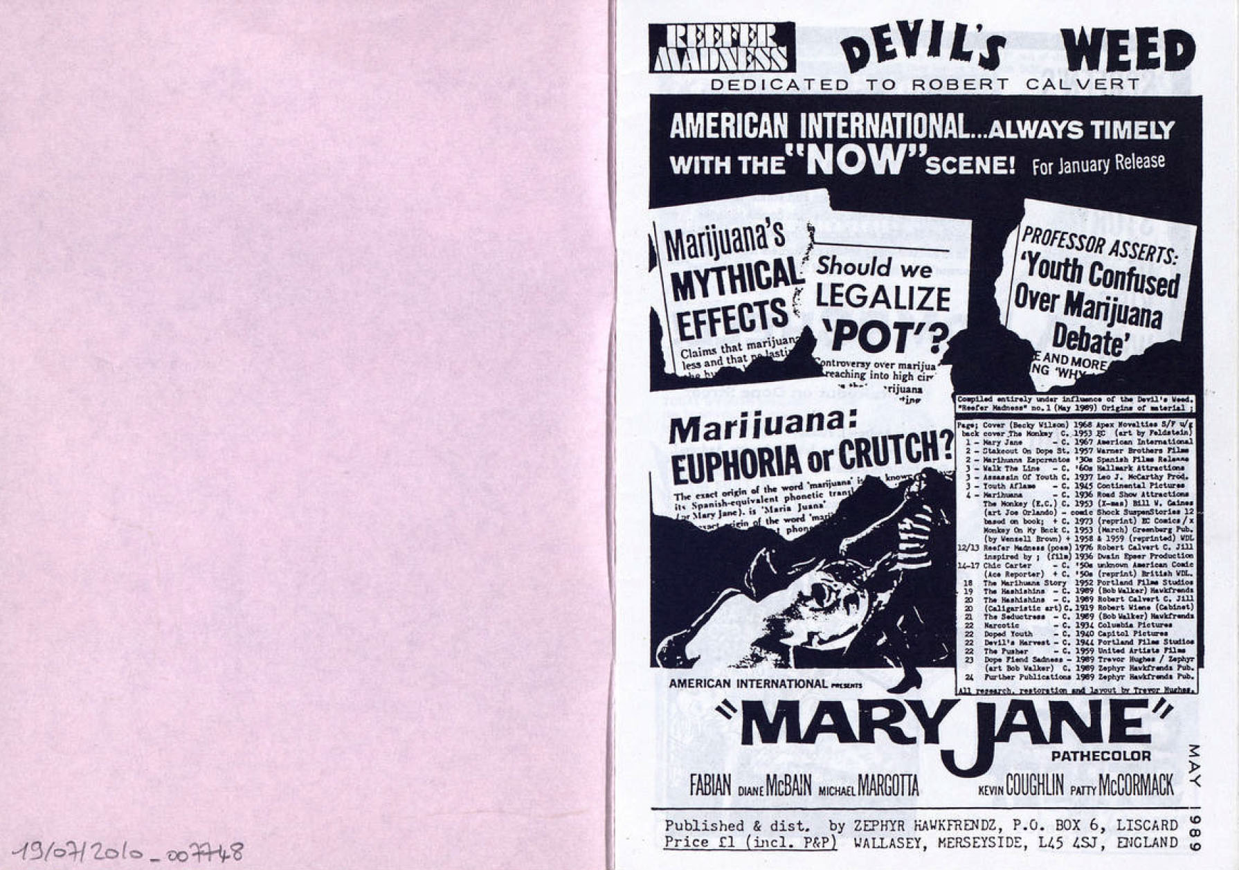 A5 28 pages → Photocopie NB ↪ GB Parution en mai 1989Reefer Madness n°1 Numerisation : Oui (150 dpi) En ligne sur Fanzinothèque.fr PLUS MOINS