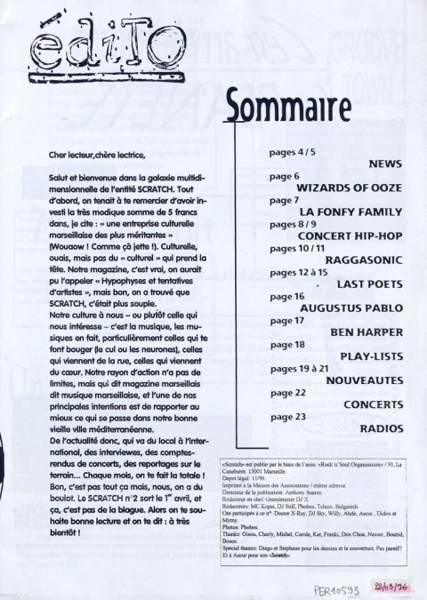 A4 24 pages → Photocopie NB ↪ FR ↪ 13 ↪ Marseille Parution en novembre 1996Scratch n°1 Numerisation : Oui (150 dpi) En ligne sur Fanzinothèque.fr PLUS MOINS