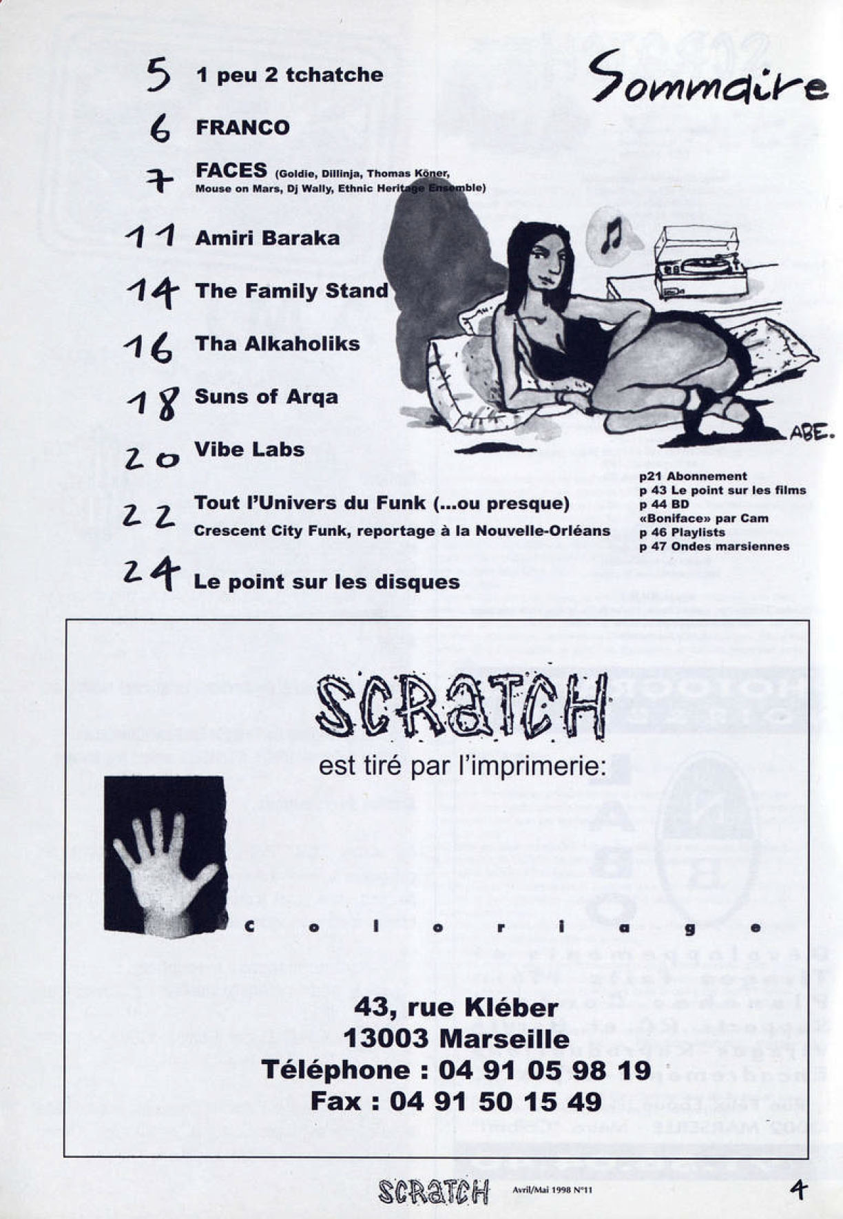 A4 48 pages → Offset ↪ FR ↪ 13 ↪ Marseille Parution en avril 1998Scratch n°11 Numerisation : Oui (150 dpi) En ligne sur Fanzinothèque.fr PLUS MOINS