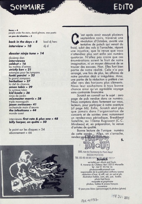 A4 68 pages → Offset ↪ FR ↪ 13 ↪ Marseille Parution en janvier 2000Scratch n°14 Numerisation : Oui (150 dpi) En ligne sur Fanzinothèque.fr PLUS MOINS