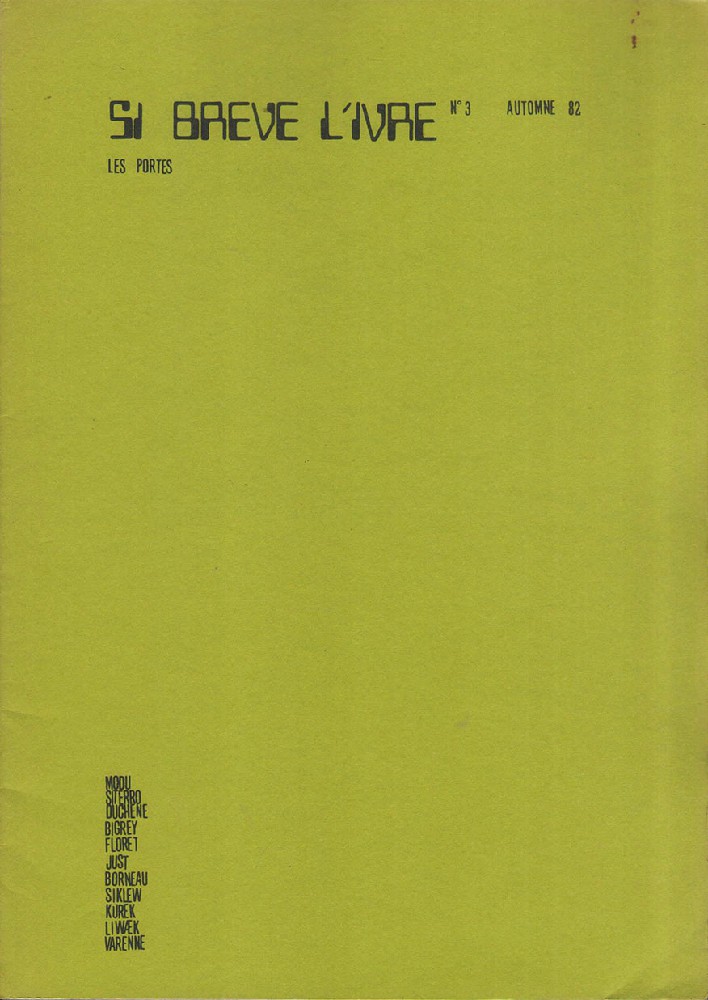 A5 12 pages → Photocopie NB ↪ FR ↪ 68 ↪ illzack Parution en octobre 1982Si Brève l'ivre n°3 Numerisation : Oui (300 dpi) Collection privée PLUS MOINS