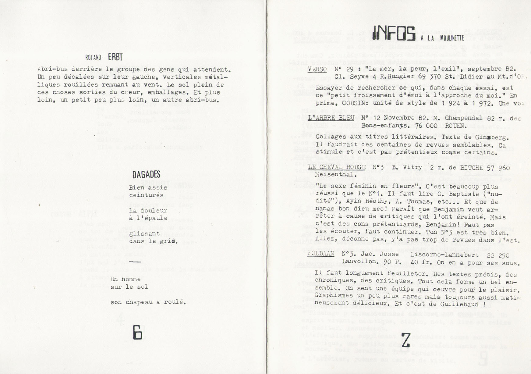 A5 24 pages → Photocopie NB ↪ FR ↪ 68 ↪ illzack Parution en decembre 1982Si Brève l'ivre n°4 Numerisation : Oui (300 dpi) Collection privée PLUS MOINS