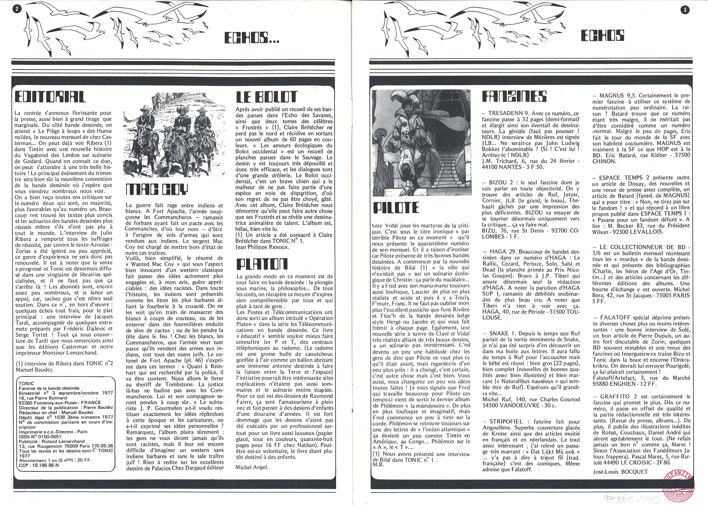 A4 16 pages → Offset ↪ FR ↪ Paris Parution en septembre 1977Tonic n°3 Numerisation : Oui (300 dpi) Collection Fanzinothèque de Poitiers PLUS MOINS