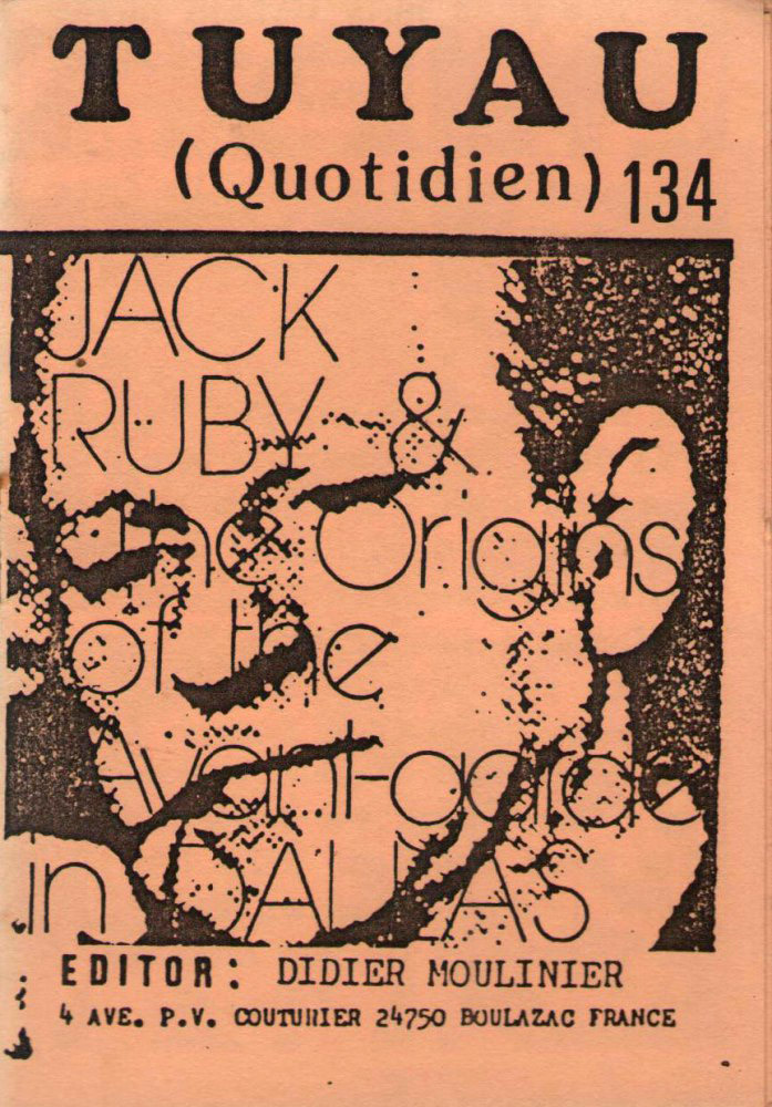 A7 16 pages → Photocopie NB ↪ FR ↪ 24 ↪ Périgueux Parution en mai 1987Tuyau Quotidien n°134 - Jack Ruby chez : Moulinier (Didier) Numerisation : Non En attente PLUS MOINS