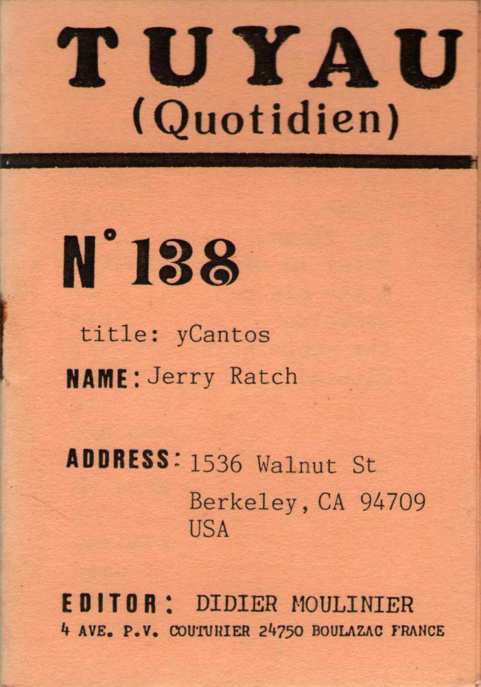 A7 16 pages → Photocopie NB ↪ FR ↪ 24 ↪ Périgueux Parution en mai 1987Tuyau Quotidien n°138 - Jerry Ratch chez : Moulinier (Didier) Numerisation : Non En attente PLUS MOINS