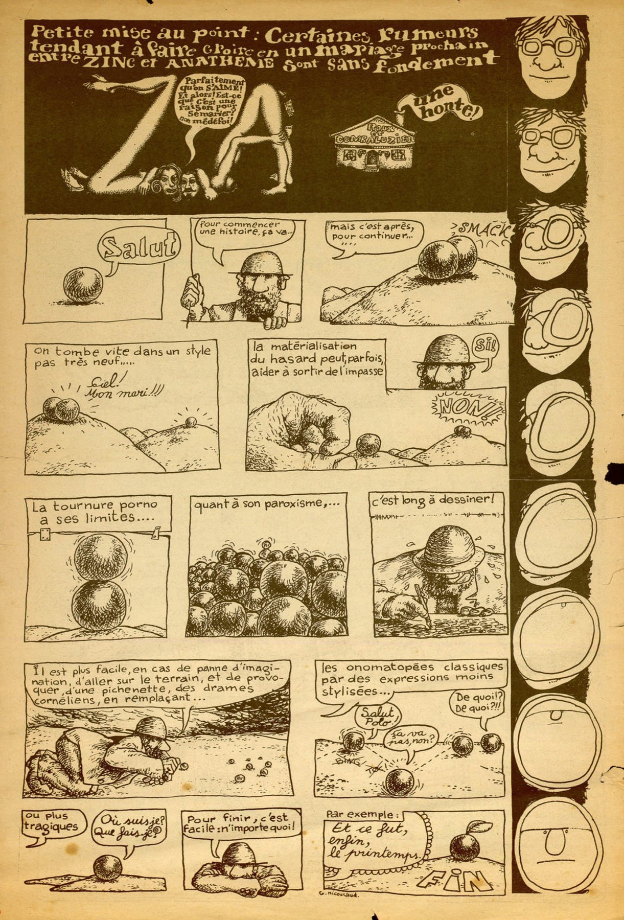 A3 12 pages → Offset ↪ FR ↪ Paris Parution en aout 1971Zinc n°2 Numerisation : Oui (300 dpi) Collection Fanzinothèque de Poitiers PLUS MOINS