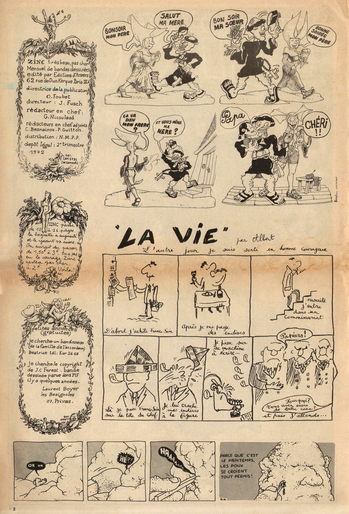A3 16 pages → Offset ↪ FR ↪ Paris Parution en mai 1972Zinc n°5 Numerisation : Oui (300 dpi) Collection privée PLUS MOINS
