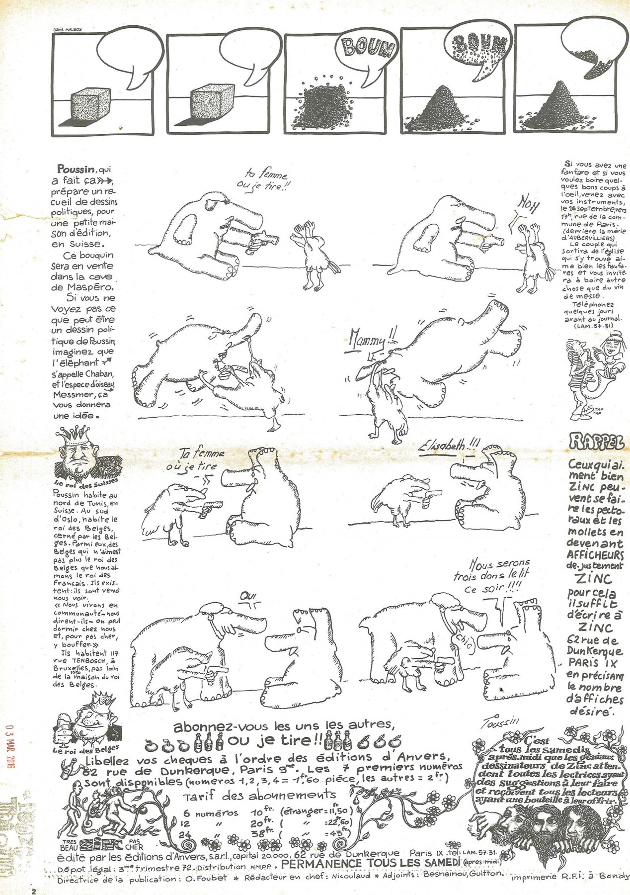 A3 16 pages → Offset ↪ FR ↪ Paris Parution en aout 1972Zinc n°8 Numerisation : Oui (300 dpi) Collection Fanzinothèque de Poitiers PLUS MOINS