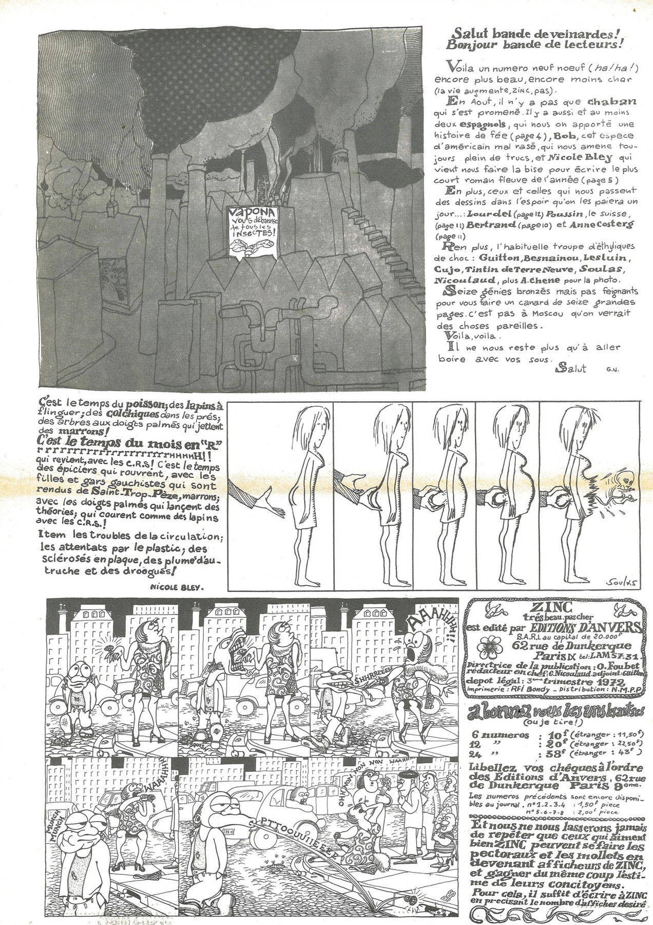 A3 16 pages → Offset ↪ FR ↪ Paris Parution en septembre 1972Zinc n°9 Numerisation : Oui (300 dpi) Collection Fanzinothèque de Poitiers PLUS MOINS