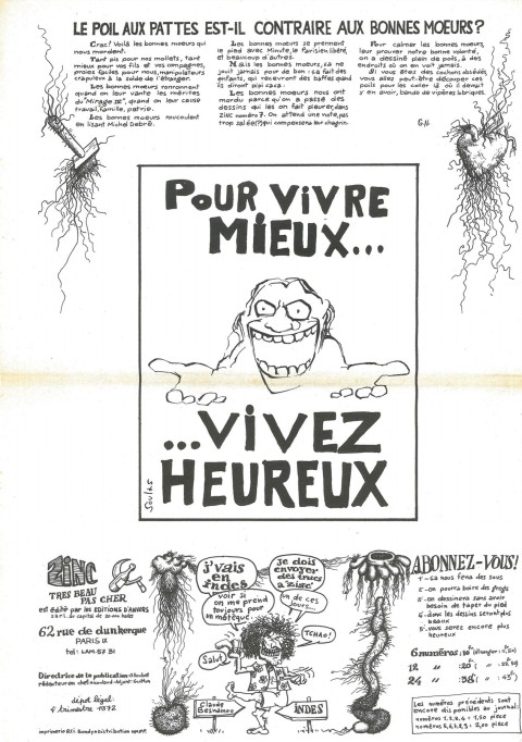 A3 → Offset ↪ FR ↪ Paris Parution en octobre 1972Zinc n°10 Numerisation : Oui (300 dpi) Collection Fanzinothèque de Poitiers PLUS MOINS