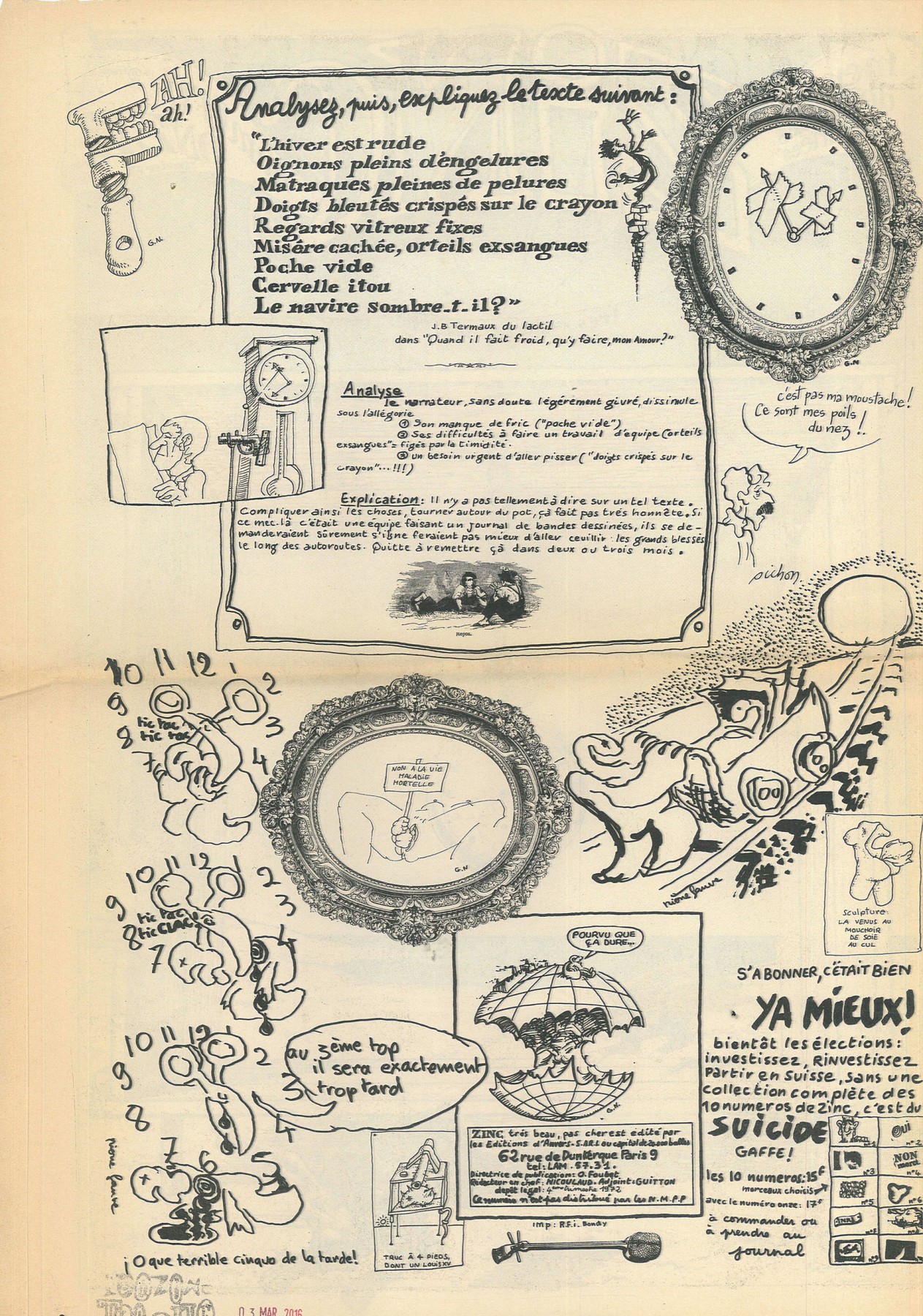 A3 16 pages → Offset ↪ FR ↪ Paris Parution en novembre 1972Zinc n°11 Numerisation : Oui (300 dpi) Collection Fanzinothèque de Poitiers PLUS MOINS