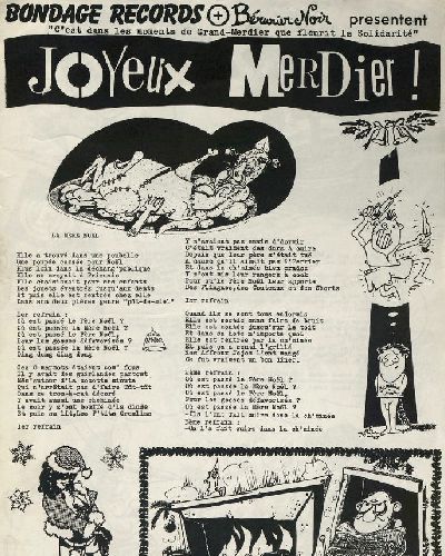 Petite brochure 4 pages A4 qui illustrent les paroles d'une chanson des Bérurier Noir en 1985. Joyeux merdier! PLUS MOINS