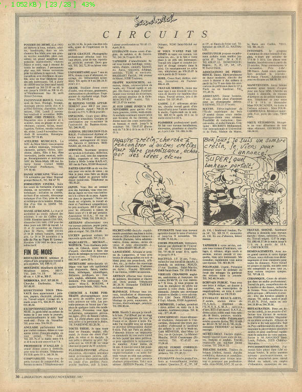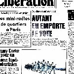 En 1977 et 1978 le groupe Bazooka intervient régulièrement sur la maquette du quotidien et propose des illustrations graphiques en se faisant remarquer par diverses provocations verbales et visuelles... 500 pages issues de plus de 200 numéros en ligne sur le site du Zentralinstitute (de l'histoire de l'art) à Munich (ZIKG): digital.bib-bvb.de/collections/ZIKG. Avant ça, Lulu Larsen et Jean Rouzaud à partir de 1975 + la rubrique Images de Willem ici de 1982 à 2001 mais qui a continué jusqu'en 2011. Et bien d'autres choses remarquables et graphiques dont les Bédé d'été de 1981.